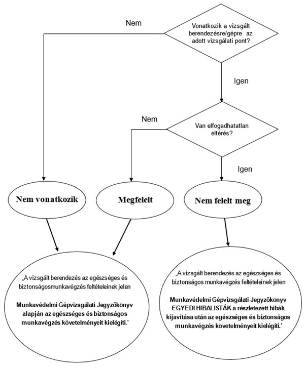 A gépvizsgálat során feltárt hibákról hibajegyzék készül, amely szintén szabvány alapú, vizsgálja a gép veszélyeit, pneumatikus és hidraulikus eszközeinek üzembiztonságát, biztonságos üzemet biztosító villamos berendezéseit és a gép vezérlését.